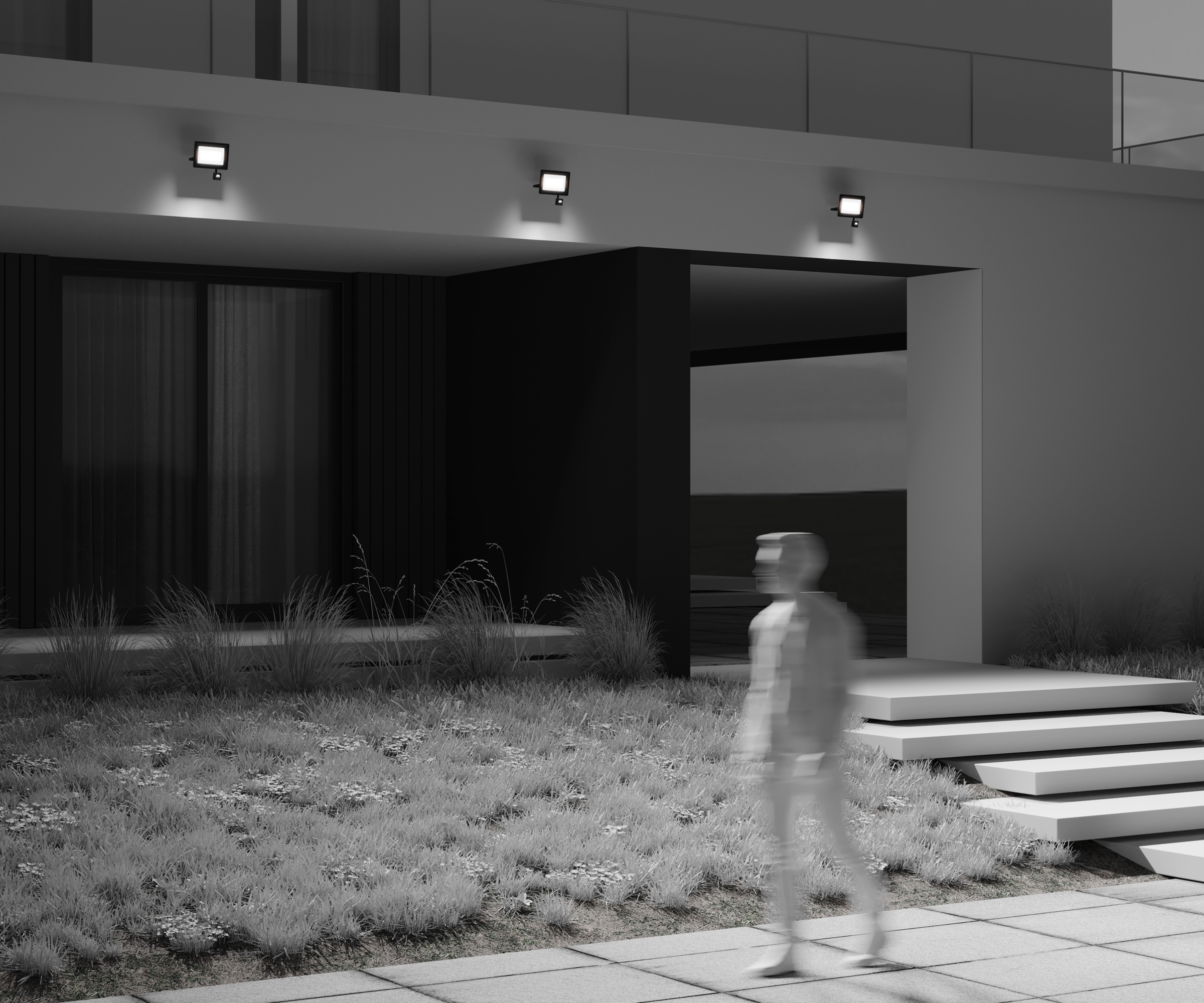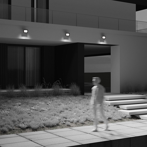 Прожекторы для освещения  экстерьеров, рабочих пространств, производственных и промышленных помещений. Материал корпуса — алюминий. Цвет — чёрный. LED-источник света.  Два варианта цветовой температуры - 4000К и 6500К. Пять размеров с соответствующими вариантами мощности — 10, 30, 50 Вт с датчиком движения. Модели 100 и 150 Вт без датчиков движения. Высокая степень защиты от пыли и влаги IP65.