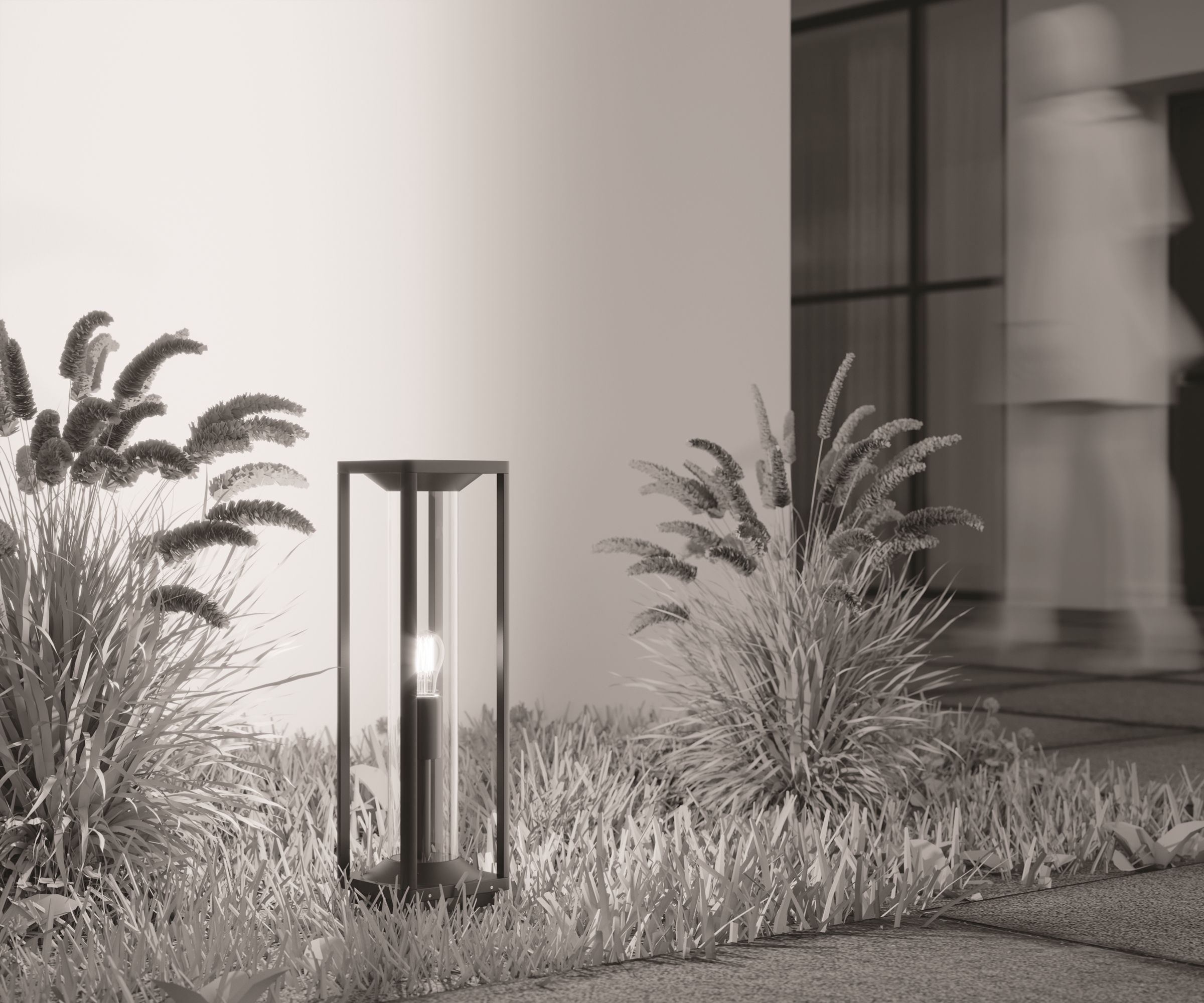Материал корпуса — алюминий, цвет — графит. Материал рассеивателя — PC-пластик. Источник света — лампа с цоколем Е27. Наличие моделей  со встроенным датчиком движения. Степень защиты от пыли и влаги -  IP65.