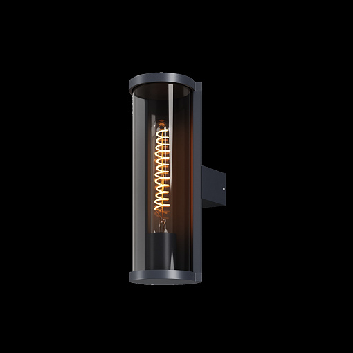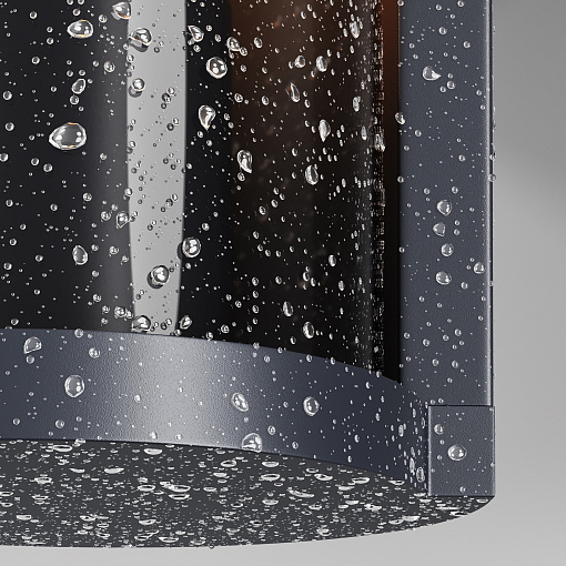 Алюминиевый корпус, цвет - графит. Рассеиватель из прочного тонированного пластика в 2-х формах: квадратный и округлый.   Идеален для экстерьеров в стиле лофт и освещения входных зон. Источник света - лампа с цоколем Е27. Степень защиты - IP65.