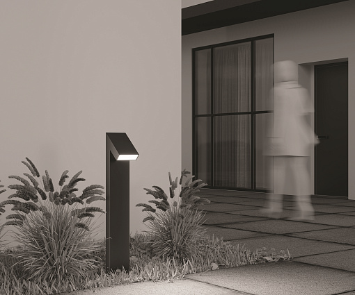 Материал корпуса - алюминий, цвет - графит. Оригинальный дизайн корпуса - акцентный элемент ландшафтного дизайна. LED-источник света, цветовая температура - 3000К. Высокая степень защиты - IP65.