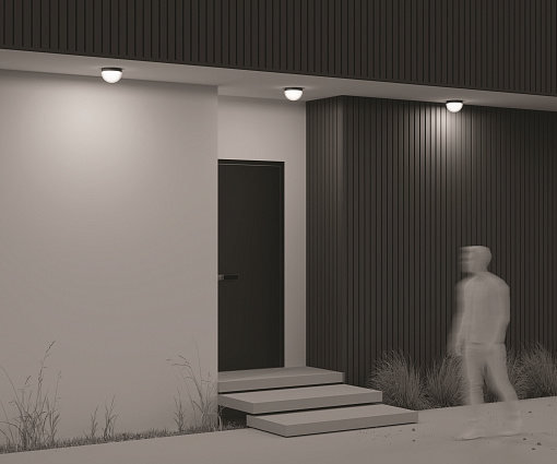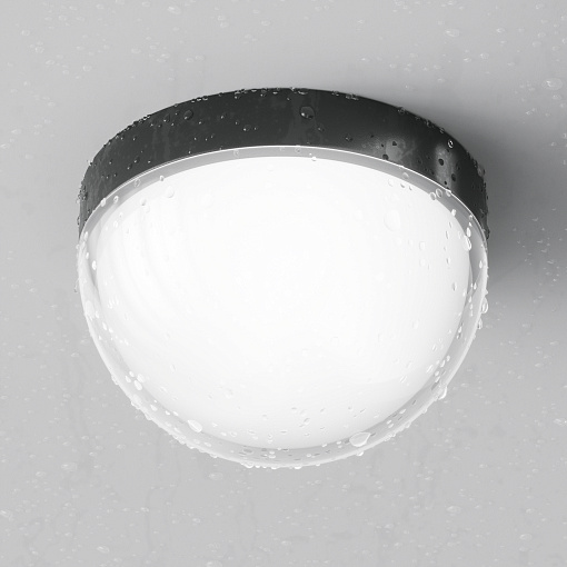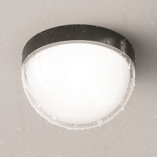 Материал корпуса - алюминий, цвет - графит. Двойной рассеиватель. Внутренний - белый матовый акрил, верхний - прозрачный пластик. LED-источник света, цветовая температура -  3000К. Степень защиты IP54. Подходит для использования как на улице, так и внутри помещения.