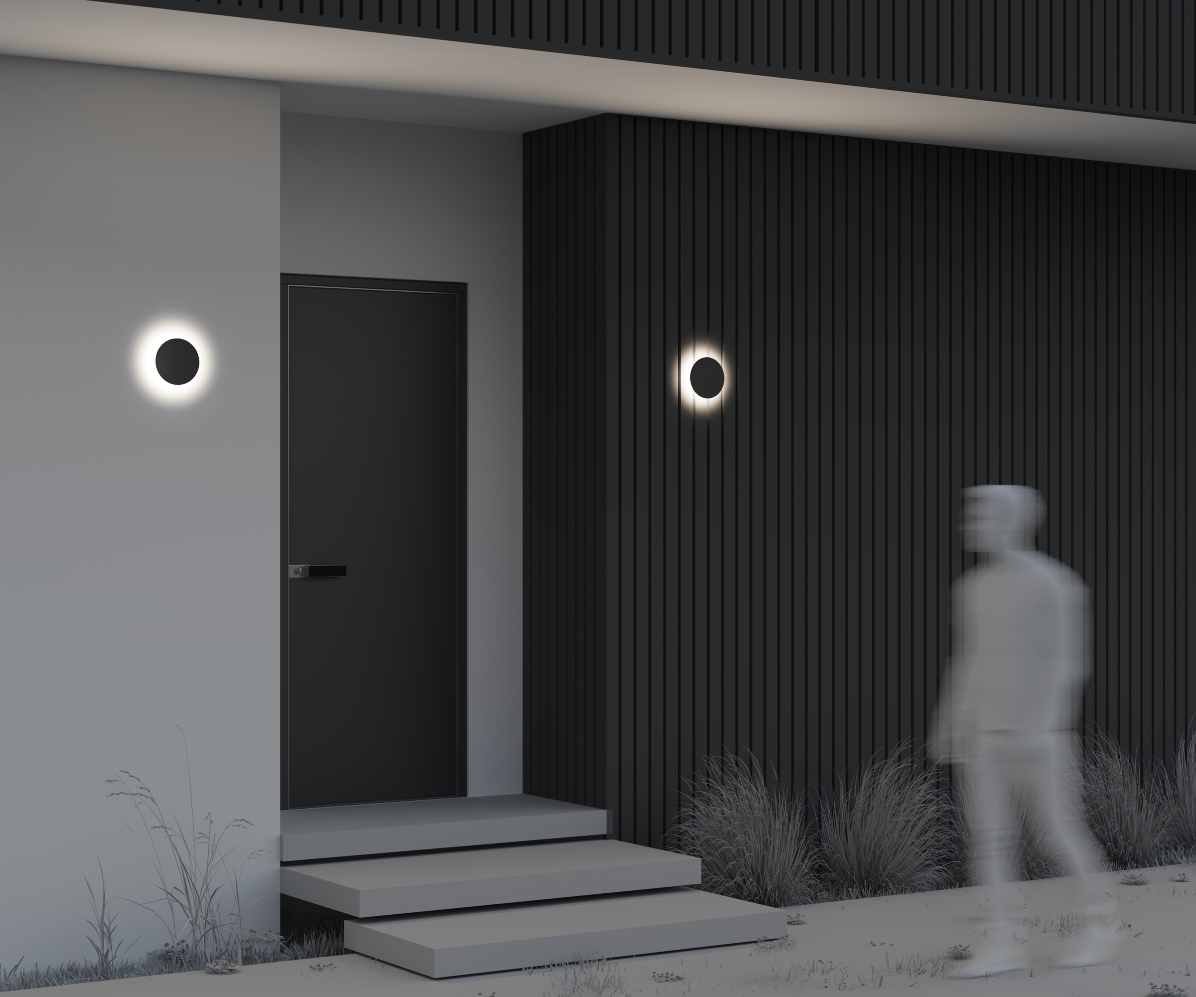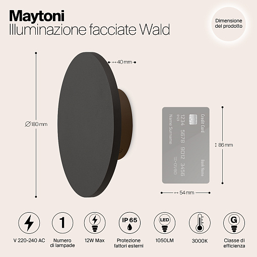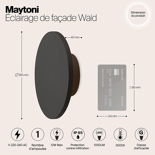 Материал корпуса — металл, цвет — графит. Высокий уровень защиты от пыли и влаги IP 65. Устойчивость к коррозии и перепадам температур. LED-источник света с нейтральной цветовой температурой 3000 К. Серия включает настенные и ландшафтные светильники.
