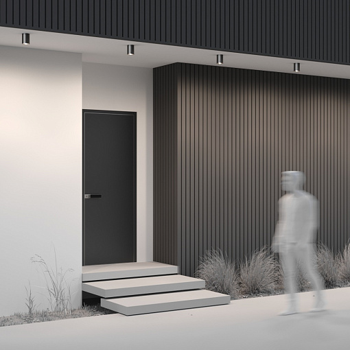 Металлический корпус в трендовом графитовом оттенке. Устойчивость к коррозии и перепадам температур. Высокий уровень IP 65. Компактные размеры. LED-модуль, цветовая температура 3000 К. Серия представлена потолочными светильниками различного диаметра и мощности.