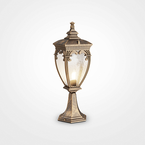 Серия представлена настенными, подвесными и напольными уличными светильниками для ламп Е27. Корпус моделей выполнен из алюминия и окрашен в два оттенка на выбор: черный с золотом или античная бронза. Светильник защищен от коррозии и перепадов температур. Декоративная технология обработки стекла PULEGOSO создает эффект пузырьков воздуха внутри плафона.