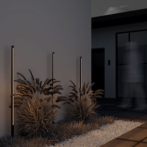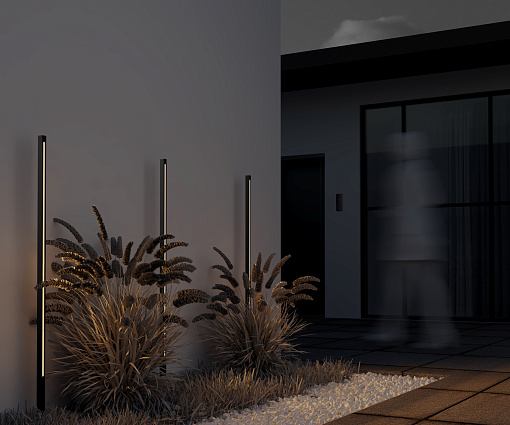 Материал корпуса - алюминий, цвет - графит. Прямоугольный вытянутый силуэт с полосой света в одну сторону. LED-источник света. Цветовая температура 3000К. Возможность установки как в грунтовую, так и жесткую бетонную поверхность. В комплекте - коннектор подключения. Серия подходит для основного и дополнительного освещения.  Степень защиты - IP65.