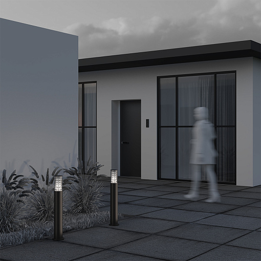 Серия садово-парковых светильников в современном стиле. Установленная в оптической части антибликовая решетка обеспечивает комфорт для наблюдателя и предотвращает световое загрязнение. Использование алюминия в качестве основного материала исключает коррози. Плафон изготовлен из устойчивого к перепадам температур пластика. В качестве источников света используются лампы c цоколем E27.