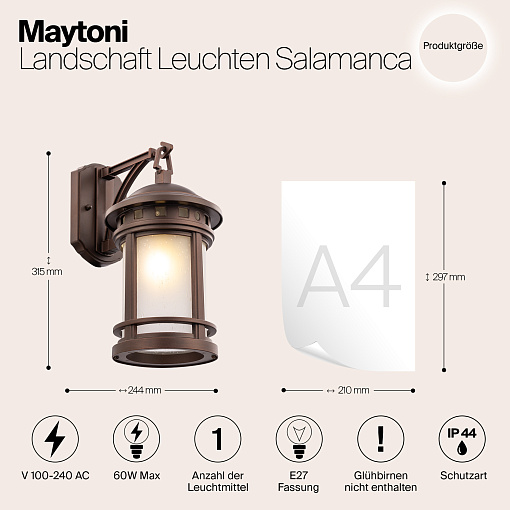 Серия садово-парковых светильников в стиле ретро. Корпуса светильников изготовлены по технологии художественного литья из устойчивого к перепадам температуры и коррозии алюминиевого сплава. При окрашивании использовалась порошковая краска коричневого цвета. В качестве источников света используются лампы c цоколем E27.