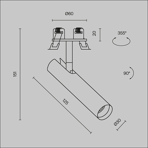Материал корпуса – металл; цвет – белый, чёрный и латунный. Миниатюрные размеры. Плафон из двух частей. Горизонтальный и вертикальный поворотный механизм. LED-источник света. Цветовая температура – 3000К или 4000К. Высокий коэффицициент цветопередачи >90.