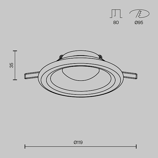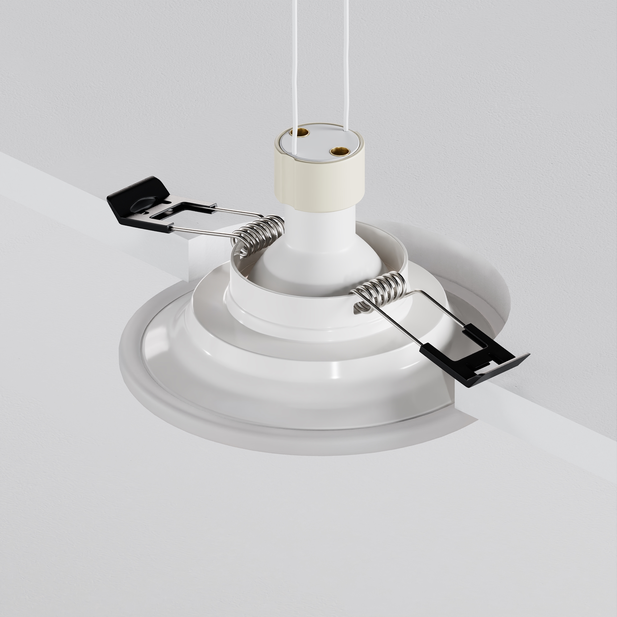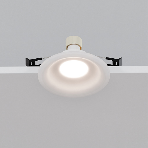 Корпус из алюминиевого сплава, покрытый акрилом. Сияющий эффект при свечении. Цвет – нежно-белый. Лампа GU10. Отсутствие стопорного кольца.