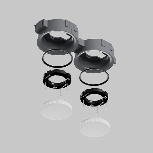 Предназначен для установки в натяжной ПВХ потолок. Состоит из основания, термокольца и цоколя GX53. Основание и цоколь выполнены из термостойкого и ударопрочного АВС пластика. Монтаж производится методом втяжки. Конструкция светильника позволяет легко стыковать между собой несколько оснований, благодаря чему можно создавать комбинации из нескольких светильников.