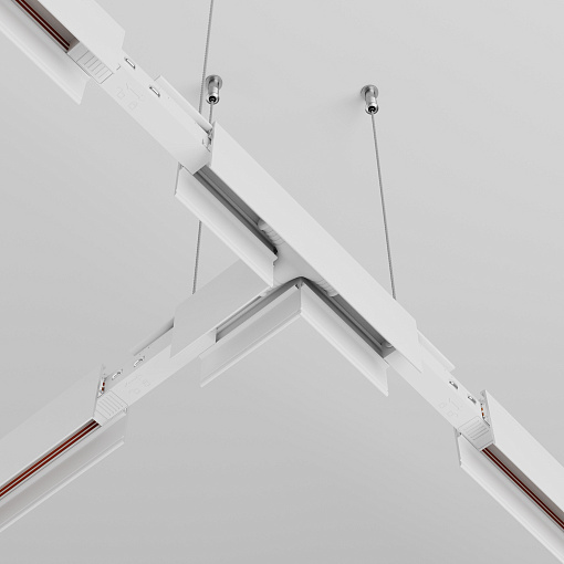 Комплектующие для низковольтной магнитной трековой системы Exility в черном и белом цветах. Разнообразие аксессуаров позволяет собрать свою уникальную конструкцию для накладного монтажа, подвесного, встраиваемого под гипсокартон и встраиваемого в натяжные потолки.