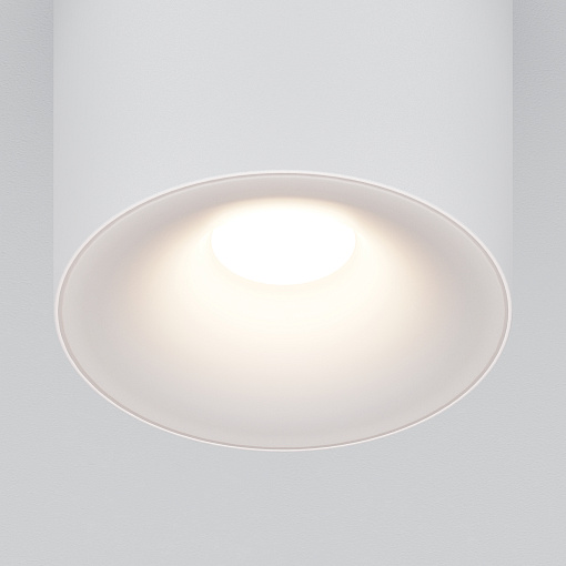 Материал корпуса – металл; цвет – белый, чёрный и золотой. Форма корпуса – стаканчик. Акриловый рассеиватель. Сияющий эффект при свечении. Отсутствие стопорного кольца. Утопленный источник света – лампа GU10.