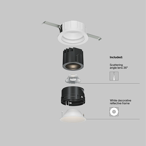 Встроенный утопленный источник света LED, обеспечивает мягкое рассеивание света. Поворотный механизм, позволит организовать акцентную подсветку зон и предметов интерьера. Сменные линзы и фильтры позволят изменить стандартный угол 36° на выбор от 15°-50° и сделать освещение более комфортным. Сменные рефлекторы в ассортименте, позволят подобрать цветовую гамму для большинства трендовых интерьеров.
