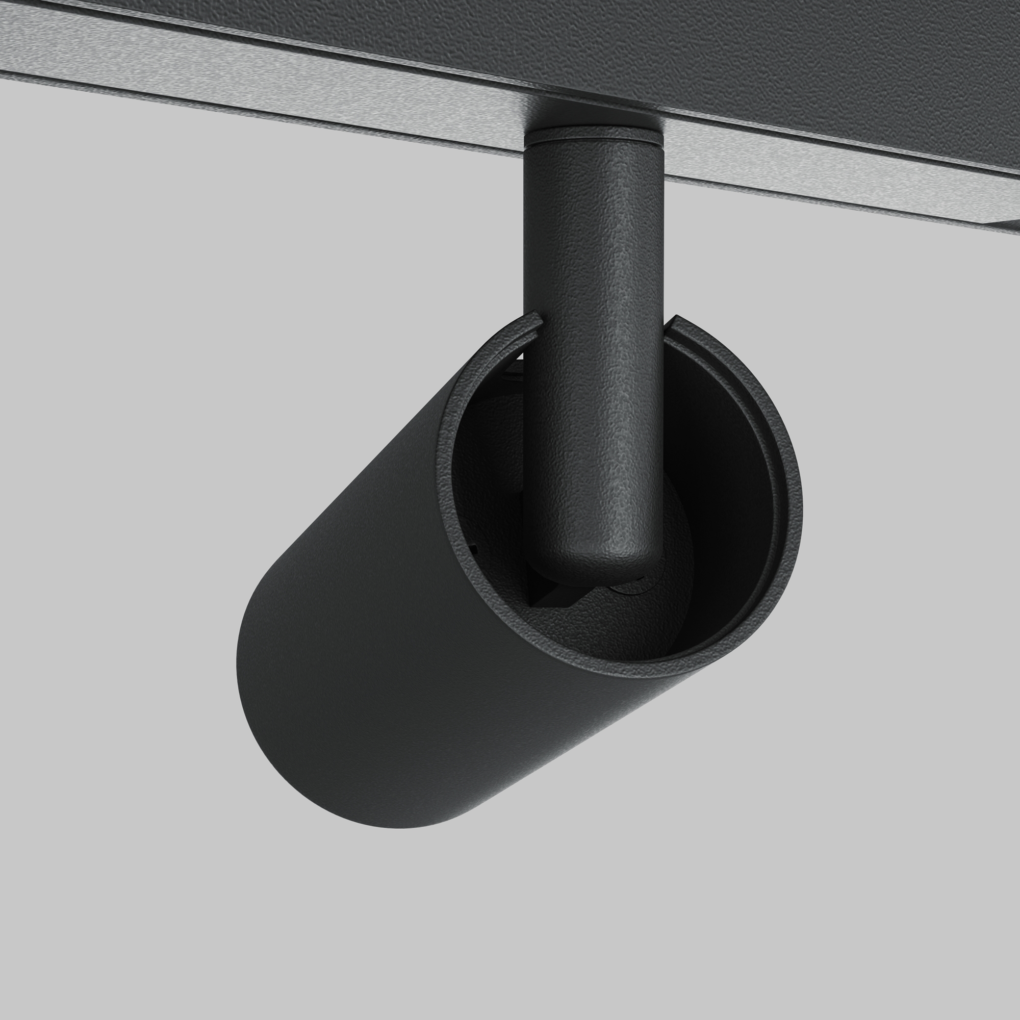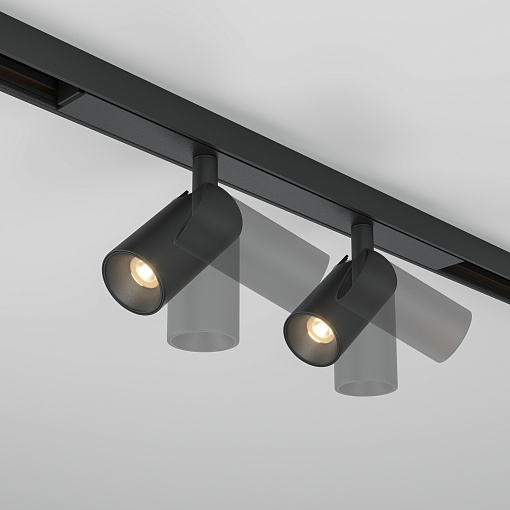 Черная арматура с глянцевой поверхностью выполнена из алюминия. Плафоны могут вращаться независимо друг от друга, обеспечивая точечное освещение зон. Две модели — в спотовом или подвесном исполнении. LED-источники поддерживают переменную цветовую температуру в диапазоне от 3000К до 6000К. При использовании стандартных блоков питания без функции управления, светильники при установке в трек одной стороной имеют цветовую температуру 3000K, а при установке другой стороной – 6000К. Светильники поддерживают функцию группового диммирования и регулировки цветовой температуры при использовании блоков питания по протоколам Bluetooth Mesh или DALI.