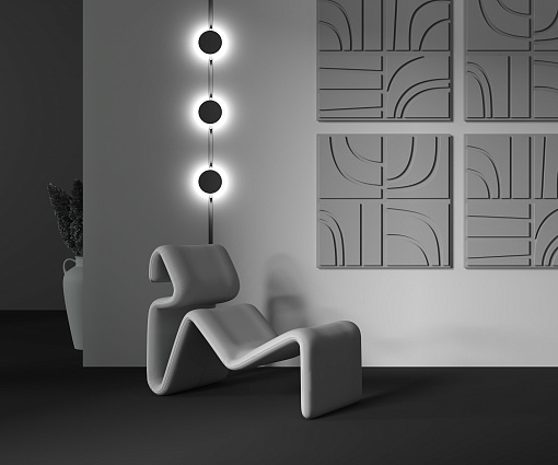 Алюминиевый корпус в трех цветах - черном, белом и латунь.  LED-источник света. Плафон в форме диска с отраженным светом, идеален для мягкой подсветки. Цветовая температура 3000K, 4000К, а также модели с регулировкой цветовой температуры от 3000K до 6000K и диммированием по протоколу Bluetooth Mesh.