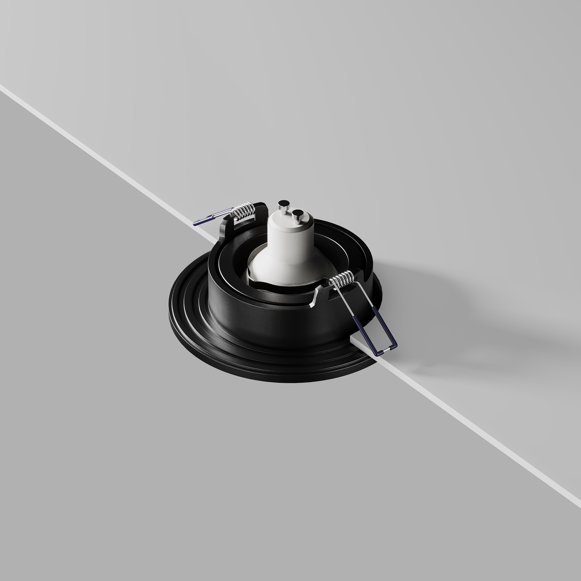 Материал корпуса – метал; цвет – чёрный или белый. Поворотный механизм. Отсутствие стопорного кольца. Лампа GU10. Высокая степень защиты – IP65.