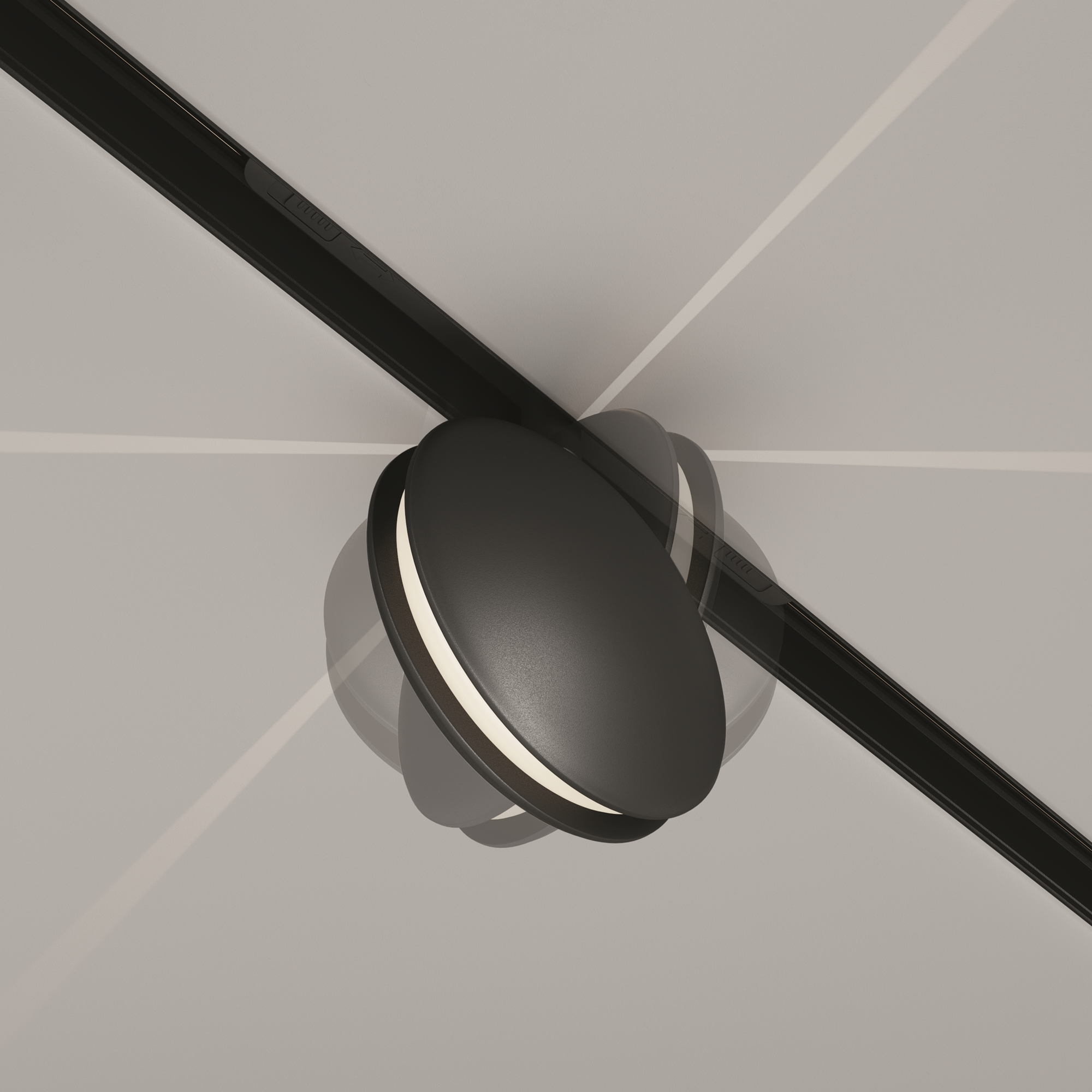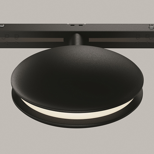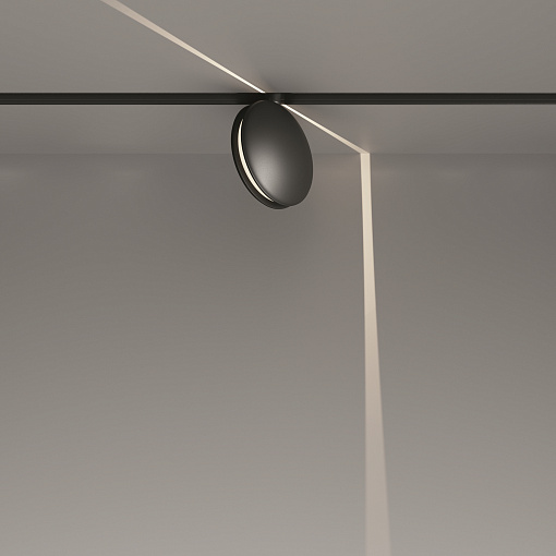 Алюминиевый корпус черного цвета.  LED-источник света. Цветовая температура 3000K, 4000К. Модели с регулировкой цветовой температуры от 3000K до 6000K и диммированием по протоколу Bluetooth Mesh. Эффект линии света – «светового коридора». Специальная линза - оптический эффект кругового периферического освещения. Поворотный механизм - вращение по своей оси. Рекомендованная высота потолка в помещении для качественного и красивого луча - 2,2 - 2,5 метра.