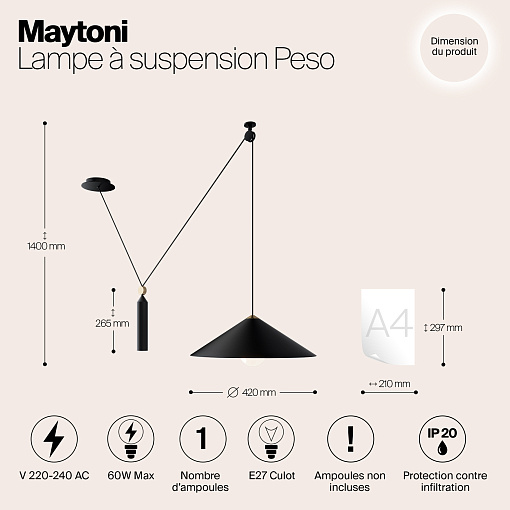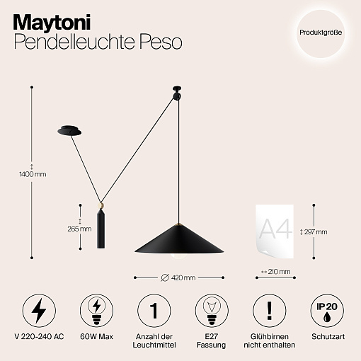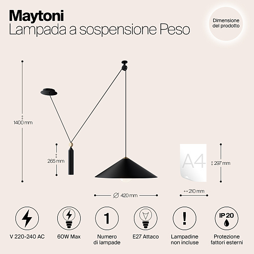 Подвесные светильники серии Peso — воплощение духа современного рационализма и прагматичных дизайнерских решений. Изящная и логичная конструкция, увенчанная широким объемным плафоном, идеально подходит для подсветки столов и рабочих зон. Светильник гармоничен, прост в установке и наделен необычным эстетическим очарованием. Модели Peso могут использоваться для оформления индустриальных интерьеров, помещений, выполненных в скандинавском дизайне или в стиле лофт.