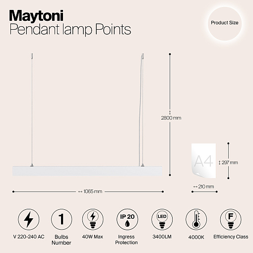 Подвесной светильник Technical P050PL-L40W4K