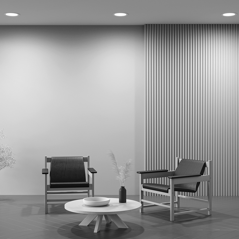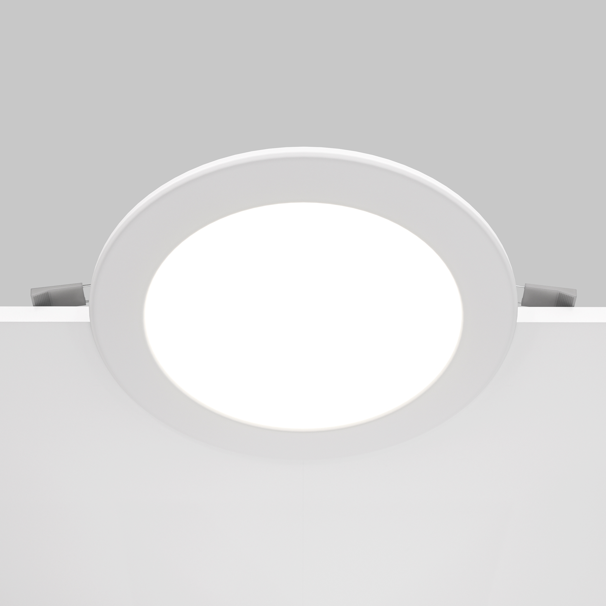 Ультратонкий корпус из ABS-пластика в белом цвете. Импульсный драйвер исключает пульсацию. Круглая или квадратная форма. Модели снабжены переключателем для выбора температуры 3000, 4000, 6000 K. Степень защиты IP44. LED-источник света.