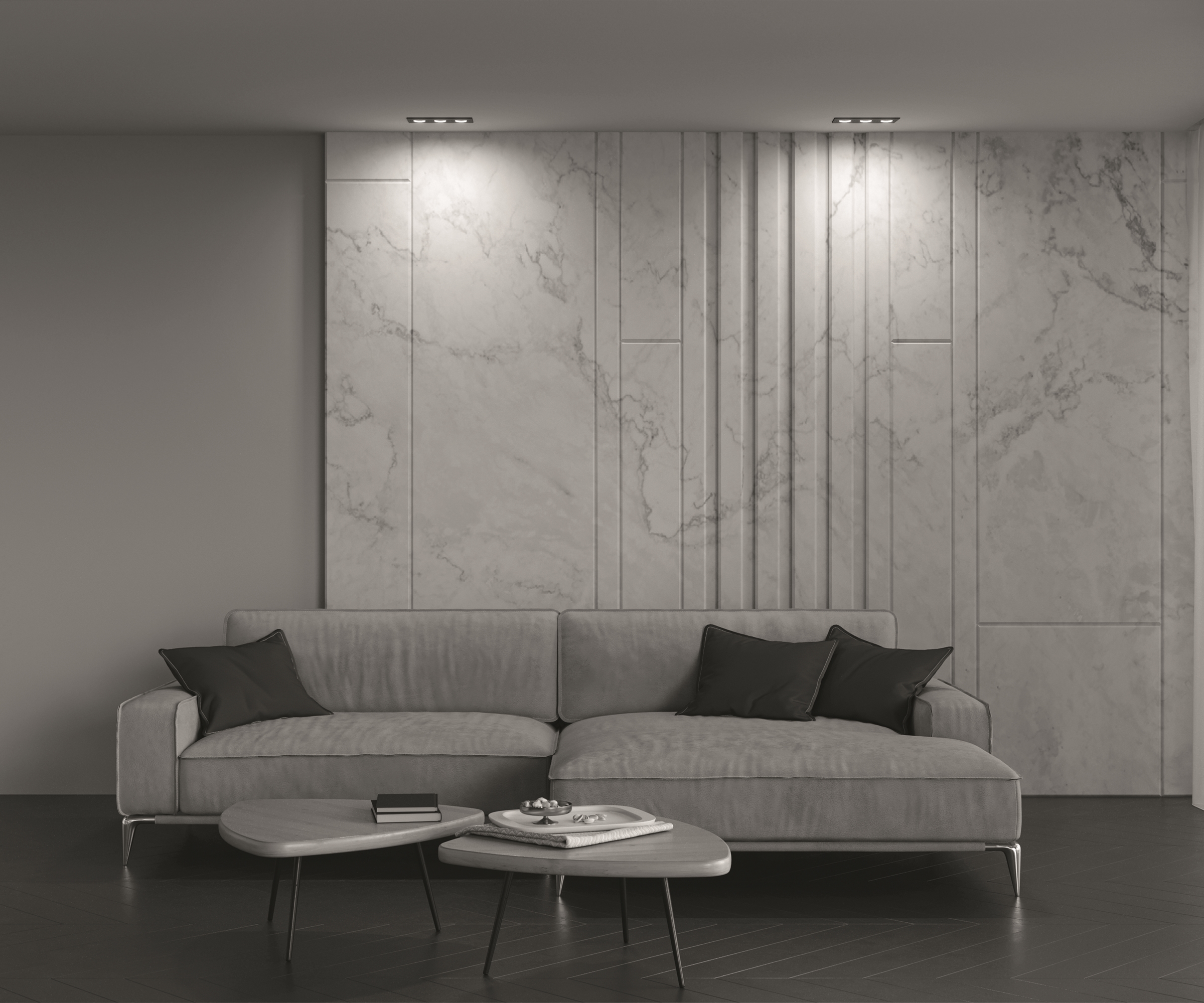 Встраиваемые потолочные светильники с корпусом, изготовленным из алюминия по технологии литья под давлением. При окрашивании используется стойкая к царапинам порошковая краска. Направление светового потока регулируется в одной плоскости с отклонением от оси на 25°. Серия представлена моделями с одной лампой, а также комбинациями из двух и трех светильников, собранных в единой металлической раме. В качестве источника света рекомендуется использовать лампы Voltega (art. 7060/7061) мощностью 7W и углом рассеивания 38°. Диммируемые версии ламп — art. 7108/7109.