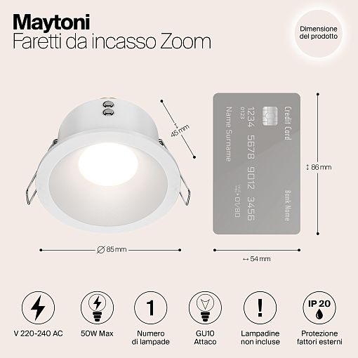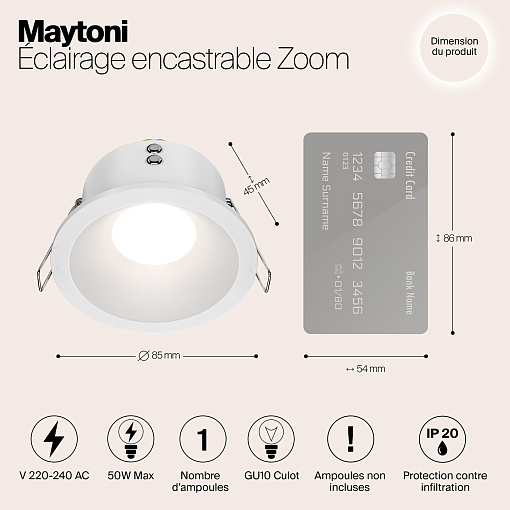 Защитное прозрачное стекло и силиконовые уплотнители обеспечивают высокую степень защиты IP65, что позволяет использовать светильники во влажных помещениях. Для визуального комфорта интегрированный LED-модуль углублен в корпус, также в серии представлены модели с цоколем под лампу GU10. Светильники сделаны из литого алюминия. При окрашивании используется стойкая к царапинам порошковая краска. Серия представлена моделями разной мощности, формой рамки, в черном и белом цвете.
