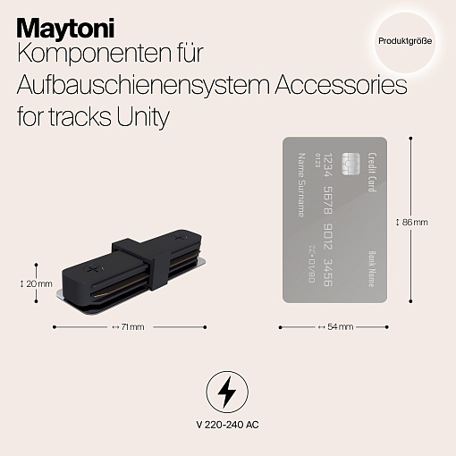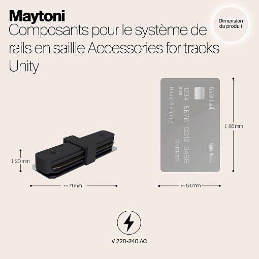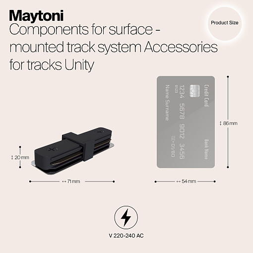 Коннектор прямой черный для накладного шинопровода